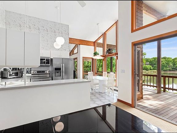 Available for the first time, this waterfront property boasts a generous 3/4 of an acre of land and sweeping views over the water. This four bedroom, three bath house offers views from all entertaining spaces and waterfront decks and patios throughout. Large finished Lower level with Gym, kitchen and walk out to waterfront grounds with sunset views. The perfect place to enjoy your Summer!