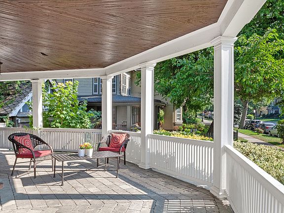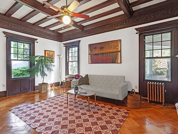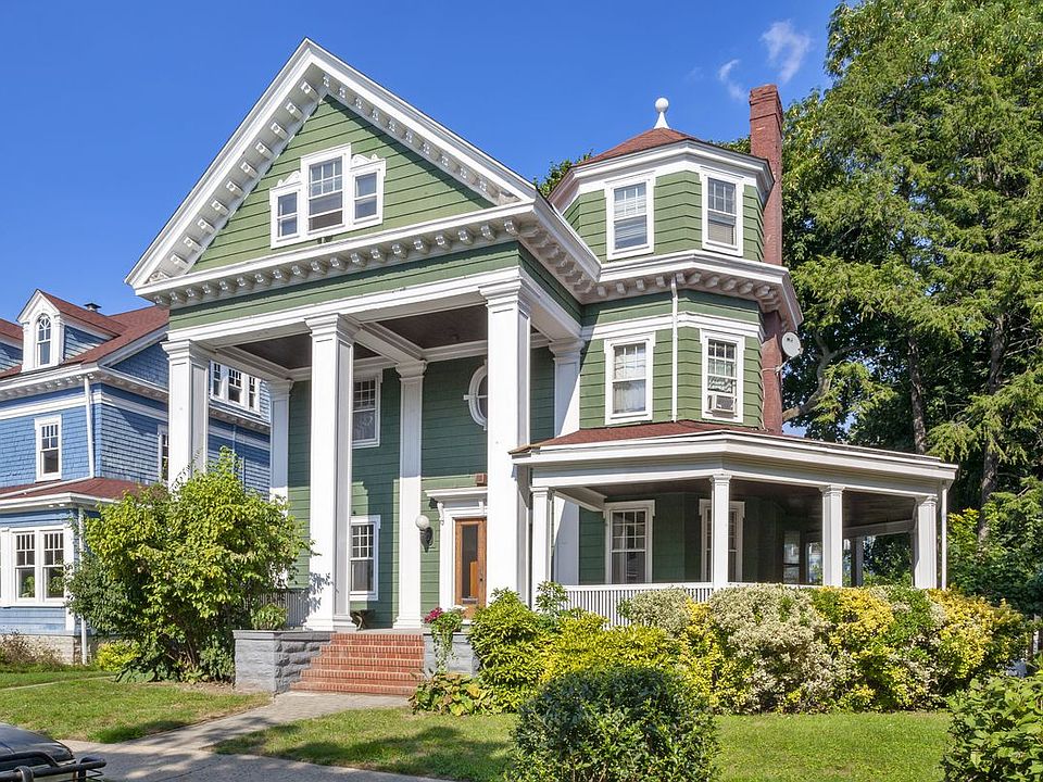 Indulge your Victorian fantasy in this romantic masterpiece. Its statuesque beauty has unparalleled curb appeal showcasing a unique blend of Greek Revival temple style with the asymmetry and turrets of a Queen Anne. The dramatic two-story colonnade supports a classically proportioned entablature and leads to a fantastic wraparound veranda that follows the curve of the turrets. Almost a perfect square in shape, 34' x 36', this showstopper was designed by George Showers in 1908. Imposing oak and glass double doors lead to the foyer where you will immediately be impressed with the late 19th Century grandeur with its dramatic proportions, original plaster and woodwork, and remarkable floor marquetry. To the left is a sitting room and to the right, a piano room with a side door leading to the porch. The formal dining room is large enough to host a banquet and contains a handsome coffered ceiling. Two of the aforementioned rooms contain fireplaces that could be restored. The massive eat-in kitchen offers a commercial grade Garland stove along with a dishwasher and center island. Two skylights centered above the breakfast table will put a spotlight on your crossword puzzle. The garden is mostly grassy and partly shaded by a mature Norway Maple with some fencing along the back property line. The staircase to the second floor is illuminated by a beautiful stained-glass window and spills onto a gracious landing giving way to three charming bedrooms, two full bathrooms and a laundry room. The master bedroom has en-suite bathroom with a deep soaking tub and separate shower. The master also contains a fireplace that could be restored for use. The third-floor contains four more rooms and a large bathroom with a clawfoot bathtub. The space at the top of the turret was definitely made to inspire a great novel with its octagonal design and flooded with light from three sides. If hobby is art then the large front room would serve as a perfect Parisian atelier. Whatever you choose, there is plenty of space with an unfinished basement to add if more space if needed. The owners of this property, along with their neighbors, are diligently working toward obtaining approvals for a shared driveway to be installed between this house and #83. If approved, it would provide the new owner with parking for two cars. Currently, they have preliminary approvals from the Landmarks Preservation Commission along with an easement letter issued by the Department of Buildings. In 1899, Dean Alvord purchased this land now known as Prospect Park South which became the blueprint of the modern suburb. It was a meticulously planned community of country houses, each of them unique, with large front and back gardens. This "country in the city" neighborhood, then considered an extension of Prospect Park, quickly attracted the attention of wealthy Brooklyn Heights and Manhattan residents for its ease to get into Manhattan and Downtown Brooklyn as well as to the seaside in the opposite direction. 85 Westminster is one of these well-preserved homes located within the Prospect Park South Historic District.