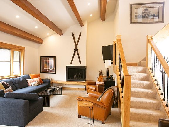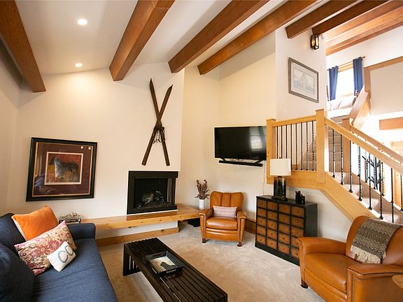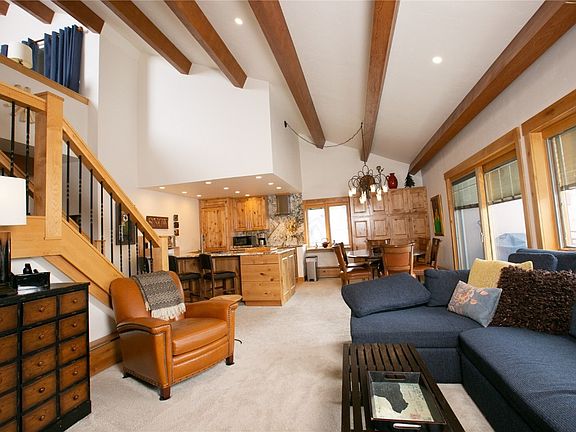 One of the largest condos in Copper Mountain, Colorado! This RARE 4 bedroom / 3 bath condo is located in Copper Mountain's highly desirable East Village in the Peregrine building! This top floor, two story condo offers a gigantic 1,555 square foot floor plan with open living room, dining area and high-end kitchen, a 19 ft X 15 ft loft / bedroom plus 3 additional bedrooms and 3 bathrooms! The huge living room boast a beamed, vaulted ceiling and all new fireplace with handcrafted wood bench! Kitchen with high-end finishes including exotic grade granite countertops, built-in refrigerator, induction cooktop, built-in convection oven and custom, knotty alder cabinets galore! Many special features including natural knotty alder woodwork throughout, all newly textured walls, gorgeous light fixtures, beamed ceilings, 2 Locking Owner Storage Closets, Ski Closet at unit entry, pella windows with built-in screens throughout, 2nd floor bath with solid surface shower & countertops, kohler fixtures throughout, large capacity washer & dryer! Open balcony overlooks golf course AND stream! Ski, ride, bike, golf, fly-fish & hike Colorado within steps of your front door! Building amenities include: elevator (new 2019), outdoor hot tub, sauna, ski wax room, extra owner storage closets and secure bicycle room!