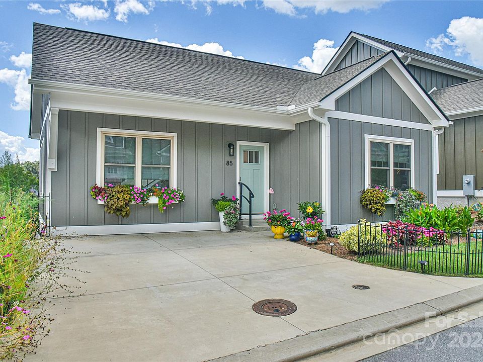 Barkley Terrace is a unique Weaverville pocket neighborhood that is just 10 minutes to downtown Asheville and 3 minutes to downtown Weaverville. This beautiful 849 sq foot 1 bedroom lives large, featuring a sizeable deck with a view. The owner took an Arts and Craft exterior and added a modern touch to the interior by leaving off walls and unnecessary doors for open concept living. She added windows to flood the interior with light and capture mountain views. Some of the upgrades includes custom Quartz countertops in the Kitchen and Bath, custom closet design and lighting, vaulted ceilings, large single basin sink in the kitchen, cordless woven wood window treatments, 8 X 20 foot deck ( sealed and treated yearly) , upgraded hardwood flooring, deep tub shower combination, fully encapsulated crawl space for storage. Exceptional perennial flowers in front yard with gorgeous window boxes too. Must see to appreciate!