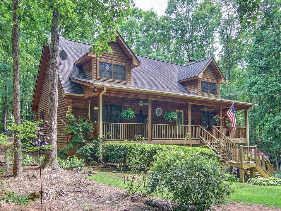 Looking for privacy. Here it is! Beautiful Log Cabin sitting on 2.25 acres. Home is nestled back in the woods with creek running along one side. Home features hardwood floors through out open floor plan. Vaulted ceiling with tongue and groove and exposed beams for that cabin look. Family room has rock fireplace with wood stove insert. Kitchen is open to family room and has extra seating at stairs with full bath and open loft great for second sitting room or office. Nice big screened in back porch along with open deck on back over looking the backyard. Located on the side of the yard is a big koi pond with sitting area. Rocking chair front porch and full basement for extra storage.