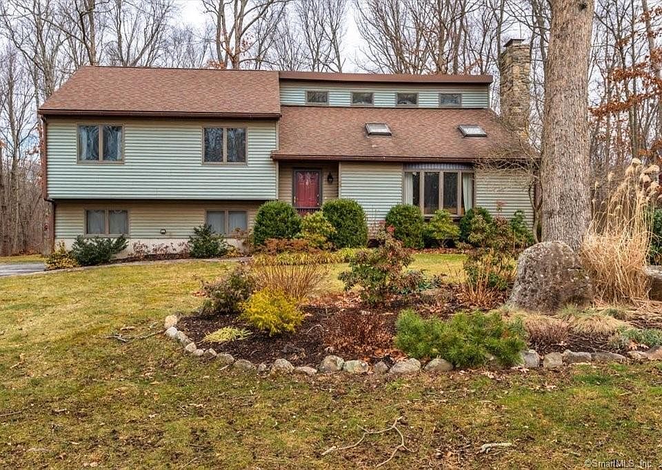 You can't help but fall in love with this Split-Level Home set on a nicely landscaped private wooded 1.43-acre lot. Nature surrounds this house. Sit and enjoy the giant deck overlooking the wooded yard with Fieldstone and Paver walks and nice perennials. Park the mower and all your lawn toys in the shed! Features include open style floor plan with cathedral ceiling and full wall Fieldstone Fireplace, kitchen with granite counters, stainless appliances, breakfast bar, built in cookbook shelves. Sliders to the deck can be found from both the kitchen dining area and the master bedroom. The master bedroom has a nice walk-in closet with built in shelves and a full bath. The lower finished area has built in shelves and a walk-out to the back yard. Upgrades include newer furnace, 4-year-old roofing, central air and generator. Just a short distance from Andover Lake! Andover Residents can join Andover Lake Assocation. This house is clean and in great condition.