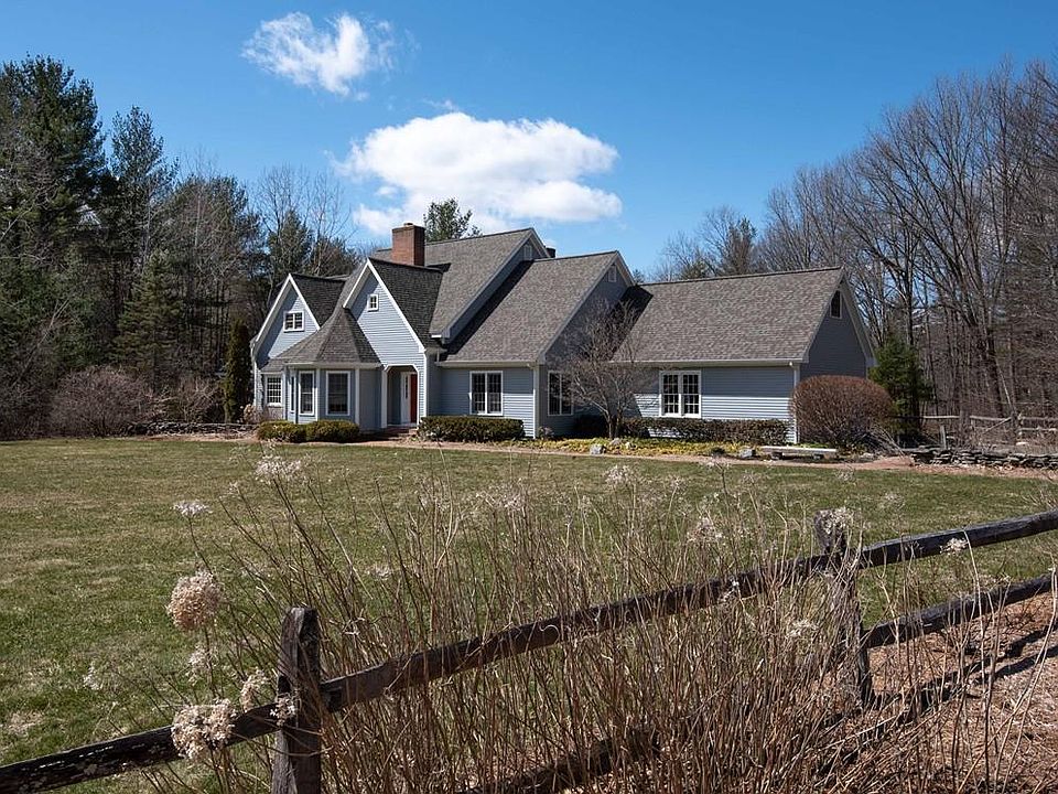 Exquisite and private custom built home is beautifully sited at the end of Woodbrook Estates on 3.9 acres with Sawmill Brook running through the back of the property. Built with a combination of contemporary architectural features mixed with traditional touches, this 4600 sq. ft home features all the amenities one would want including a luxurious 1st floor master bedroom suite with outdoor access. A high end chef's kitchen with granite counters, cherry cabinets, professional stainless steel appliances and double ovens which transitions to a windowed breakfast nook and fireplace which then opens to the family room with fireplace insert. Upstairs are 2 bedrooms w/shared bath, an additional 3rd bedroom w/en-suite bath, sitting room, plus a finished bonus room. Great outdoor space with stone and brick patios, outdoor fireplace, pergola, and in-ground saltwater Gunite pool with separate hot tub. Fruit trees and perennials adorn the property. Sleek solar panel system just added on the garage.