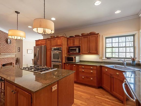 - Kit Dscrp: Flooring - Hardwood, Countertops - Stone/Granite/Solid, Kitchen Island, Stainless Steel Appliances, Fireplace, Open Floor Plan, Recessed Lighting, Gas Stove