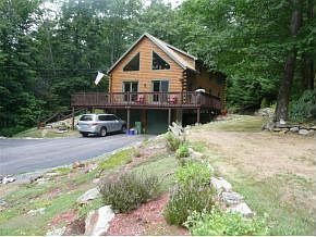 Custom designed log home with traditional features peacefully set on a large wooded site with plenty of privacy. Sundrenched windows surround the main living area of the home. Soaring family room with wood stove. Open concept plan that opens the kitchen to the family room making it perfect to entertain family and friends. Glistening hardwood floors throughout. 2 spacious bedrooms are located on the 1st floor. The 2nd floor has a master bedroom, full bath and loft area perfect for a study or den. The master bedroom has a large walk-in closet with excellent storage. Enjoy summer days on the over-sized deck that overlooks the wooded view and lush yard. Walk through conservation land on walking trails directly from your home! Conveniently located just minutes from 89 and 93. A must see location and setting!