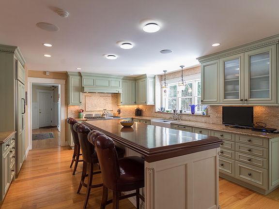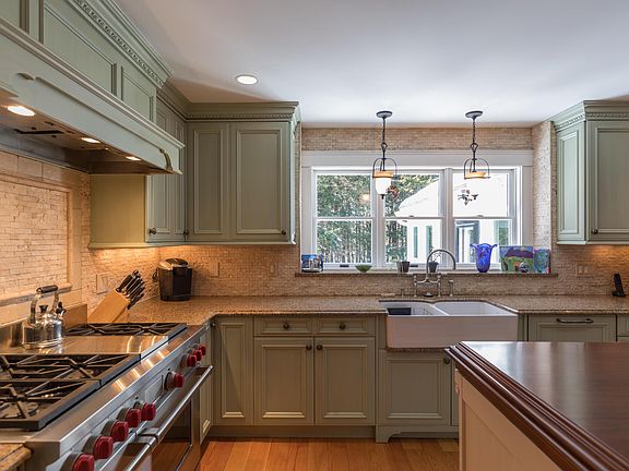 Privately set on 1 acre in Falmouth's desirable Woodland's neighborhood, this stately colonial perfectly blends classic charm with modern convenience. Meticulously crafted and well appointed, this 5 bed, 4 bath home offers a gracious floor plan featuring moldings, wainscoting, and beautiful hardwood floors throughout. The sun-filled chef's kitchen is clad with premium finishes & fixtures including stainless steel appliances, expansive center island , and separate wet bar area. Just off the kitchen, a cozy family room with built-ins and a gas fireplace opens to a stunning sun room with access to the deck. A formal living room with a gas fireplace and dining room sit at the front of the house providing plenty of room to entertain. Upstairs, indulge in the large master suite complete with a walk-in closet, and full bath with heated radiant tile floors and a custom glass shower. A laundry room is conveniently located on the 2nd level and an additional 3 generously-sized bedrooms. The finished daylight basement features a huge bonus space, a storage room with built-ins, and another bedroom with full bath and walk-in closet. A massive 4+ car garage provides ample storage for all vehicles and toys and offers direct entry to the mudroom and basement. Enjoy all of the Woodland's Club amenities while being close to shopping, restaurants, and Falmouth's award winning schools.