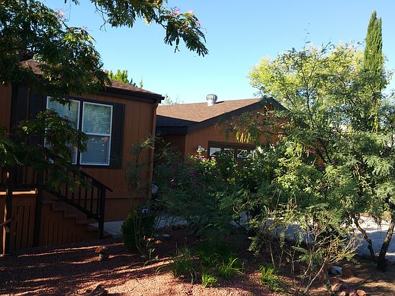 PRIVACY GALORE in this beautiful lush, green, split floor plan home. Only five minutes from West Sedona shopping and 15 minutes from Cottonwood. This 3 Bedroom/2 Bathroom, split floor plan home feels like new and provides 1,652 square feet of air-conditioned living area with an adjacent, over-sized double garage. The lovingly cared-for, 2000-built home is in the well-maintained 55+ Sunset Hills subdivision. Nearly a half-acre (0.46) of PRIVATE land, backing to the Coconino National Forest. Brand new stainless steele Samsung kitchen appliances and washer/dryer in laundry room. Freshly painted inside and out with rich rustic Sedona Red Rock colors. Laminate wood floors throughout the home with a beautiful flagstone fireplace in the living room. The newly screened in lani on the back of the house overlooks mature bushes and pine trees. In addition, a new shingled roof was installed in 2015. The home is available furnished or unfurnished. Owners prefer to occupy the home until May 30 due to work obligations--willing to rent from buyer if sold before May 30.
