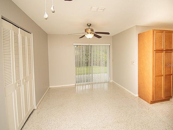 BEAUTIFULLY MAINTAINED, MOVE IN READY, HOME IN LAKE ELBERT COURT. This home boasts new interior paint, terrazzo flooring throughout as well as new modern lighting and hardware. The galley style kitchen has all newer wood cabinets, hardware and a cabinet pantry. The spacious living room and dining room combo hosts dual sliders to the large covered back porch and access to the enclosed four season front porch, both perfect for hosting guests or just breathing in that outside air. Both bedrooms are generously sized, with one offering dual closets. They are separated by the full bathroom, that recently had a new tub/shower and surround installed as well as a newer vanity and hardware. Some additional spaces include an interior laundry room with outdoor access, (21x11) covered carport as well as a (20x11) shed equipped with shelving and extra storage/workspace. The backyard draws you in with the wooded views and serene atmosphere. Located near major roadways for easy commutes to surrounding areas such as Orlando, Lakeland or Tampa and just a short drive to many of Winter Havens restaurants and attractions.