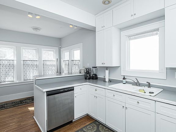 This charming 1918 home nestled in the urban Kutzky Park neighborhood located in the heart of Rochester, is just a few blocks from downtown, Mayo Clinic and local parks. The main floor boasts a kitchen with plenty of storage. Beautiful woodwork and attractive wood floors, leaded glass windows throughout the main floor dining room, family room and living room areas enhance this cozy home. French doors from the family room, lead into the living room creating a nice flow for entertaining guests and family. The living room features a handsome wood burning fireplace, a built-in bench for extra storage and an abundance of light from the three different groupings of windows. The upstairs includes three nice sized bedrooms, a small office, and a full-sized bathroom. With an unfinished attic on the top level of the house, many possibilities exist for additional usable living space. This vintage home will capture your heart!