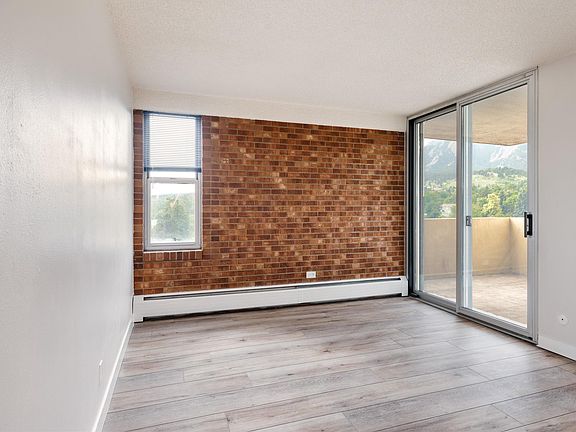 Premier location with the best mountain views in Boulder. 7th floor penthouse in a key-fob entry building across from CU Law School and Regent Hall (west of Broadway). Enjoy sweeping mountain views from the living room, dining room, and bedroom. Completely remodeled 1-bedroom unit with balcony and roof-top deck with 360 degree views, new appliances/cabinets, AC, reserved parking space, guest parking, large storage locker, on-site laundry, outdoor swimming pool. Convenient location to CU, the Hill, Pearl Street, and Chautauqua Park. Easy access to US 36 and near bus stop. Ideal for faculty/staff/graduate students. Seeking responsible professionals. Available immediately. Minimum 1 year lease. 1 month security deposit. Includes water, trash, recycling, and snow removal. Excludes cable and electricity. Non-smoking building. No pets allowed. Available immediately. Minimum 6-12 month lease. 1 month security deposit. Includes water, trash, recycling, and snow removal. Excludes cable and electricity. Non-smoking building. No pets allowed.