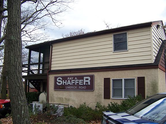 Endless possibillities. All brick ranch, large open living room, stone fireplace, showcase windows, windowseat, half carpet, 1/2hardwood floor. Large eatin kitchen with double sink, builtin Jennaire stove, dishwasher, breakfast bar, dining area with builtins, Laundry room with seperate ent/exit, newer tile floor. Powder room off laundry/kitchen. 4 season sunroom, slate floor, skylite, sliders. MBr has full bath, walkin closet, w/wcarpet. 2nd bedroom 2 closets, full bath. 2nd & 3rd Br w/hardwood floors. 1Car attached garage. Geothermal heat, Central air. Inground cement pool( needs repair), pool house w/2 baths, chain link fence. Office building approximately 1100 square feet, 2 story, 2 baths, conference room. Detached 4+car, 2 story garage with heat and electric. Office building +Det.Garage are presently occupied by Shaffer Plumbing(would like to lease after the sale) House tenant occupied, need 60days to vacate. Public records used to have address as 303 N Limerick Rd. Motivated seller, make an offer!