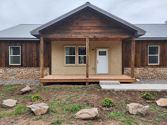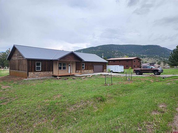 Newly constructed home finished in late 2022. House is 1,760 sq ft with 128 sq ft porches and a 672 sq ft attached 2 car garage. Total of 2,432 sq ft finished and insulated home including 3 bedroom and 2 bathroom house and 2 car garage. Granite countertops and hickory cabinets throughout kitchen and Luxury Vinyl Plank flooring throughout house.Fully insulated and finished attached 2 car garage. Two full bathrooms. Open concept with living room, dining room, and kitchen. House is built on a level lot in the highly coveted Ponderosa Valley Estates subdivision. Beautiful mountain views in all directions. Ponderosa has a resident population of mule deer and turkeys. Short Term Rentals are allowed per Town of South Fork regulations with cap limits. Town snowplows roads in winter.
