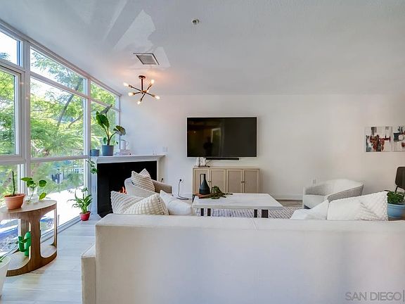 Welcome to The Discovery at Cortez Hill, your urban sanctuary in the heart of the city. Enjoy an array of upscale amenities including a rooftop pool and spa, fitness center, social lounge, and 24-hour concierge service. This spacious two-story walk-up offers 1,610 square feet of living space, complete with a balcony and private patio, and is the lowest-priced unit per square foot in the entire building. A rare find, this residence features two separate entrances: one with direct street access and the other from the building’s second floor. Additional highlights include side-by-side parking, a deeded storage unit, and abundant closet space in both bedrooms and the versatile flex area. The main living area showcases floor-to-ceiling windows, a large balcony, and an ambient fireplace, creating an inviting atmosphere. The kitchen is outfitted with stainless steel appliances, granite countertops, under-cabinet lighting, and luxury vinyl plank flooring throughout. The split-level layout offers ideal separation for guests or privacy. The lower level features the primary suite and a flex space perfect for a home office or den, with direct patio access to the street. Parking spaces are 189 and 241 located on P1. The storage unit is L147 located on P1. Lockbox is on the left side when you enter the closet behind the door(serial 2400250).