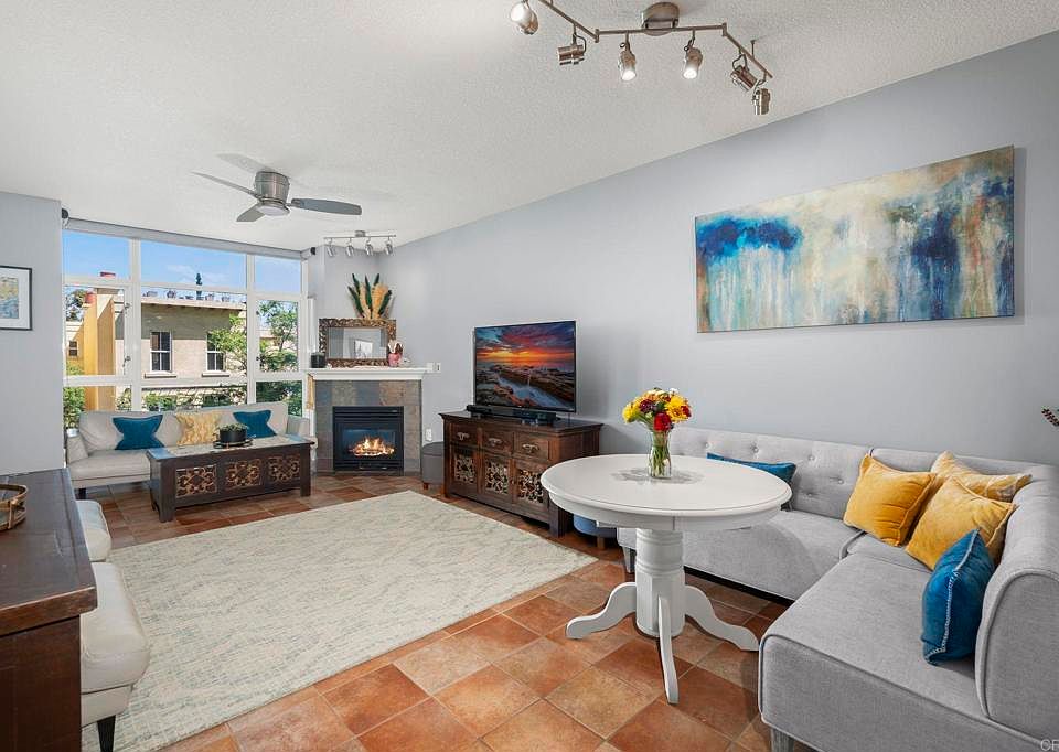 Welcome to Discovery at Cortez Hill - where sleek urban living meets luxury and tranquility. This pristine 2-bedroom, 2-bath residence in a contemporary luxury building designed for style, comfort, and convenience. With its clean modern finishes, open floor plan, and abundant natural light, this home offers a perfect balance of sophistication and livability. Relax by the cozy natural gas fireplace; roll down shades throughout, and beautiful easy care tile flooring. Step out onto your private balcony and expand your living space with an additional 108 sqft. of outdoor serenity, perched high above the treetops. Enjoy year-round natural privacy and a breezy, open-air atmosphere. In spring, the Jacaranda trees burst into vibrant purple, creating a breathtaking backdrop to your peaceful retreat. The chef-inspired kitchen with sleek granite countertops flows seamlessly into the living and dining areas, creating an inviting space for both everyday living and entertaining. The spacious primary suite feels like a private retreat, enhanced by top-of-the-line custom blackout shades, for the ultimate night’s rest. Add in the spa-inspired bath and generous closet space for pure indulgence. The second bedroom is versatile and can be used as a guest room, home office, a creative space, or den; tailored to your lifestyle. The guest bath features custom-tiled stall shower and granite countertop. A full size stacked washer and dryer are included. Residents enjoy 24-hour security and access to an array of high-end amenities, including the 10th floor rooftop heated lap pool & spa with sweeping panoramic views, a BBQ area with resort style seating and 2 fire-pits. A state-of-the-art fitness center with weight room, cardio, steam room and sauna plus thoughtfully designed communal space to unwind or socialize. A concierge service is available to accept your packages and securely store them in the on-site storage room. Plus, there’s a bike room for those who enjoy cycling. Included are one deeded parking space in the gated underground garage and an individual storage unit. Located in one of downtown’s quietest neighborhoods, Discovery at Cortez Hill is just steps away from Little Italy, Petco Park, Gaslamp Quarter, and Balboa Park. With I-5 freeway and 163 access only 3 blocks away, and travel to the airport in under 15 minutes, this is city living at its finest. Make this chic condo your urban oasis.