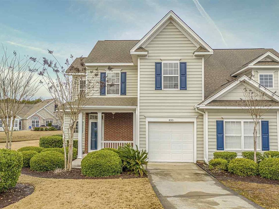 Want all of the perks of living in a condo, but with all of the luxuries of a single family home? Look no further! This 4-bedroom, 2.5-bathroom townhome offers space and privacy, as well as low-maintenance living and amenities galore! Located in the gated community of Johns Bay at Prince Creek, this end unit sits at the end of a cul-de-sac and overlooks a community pond with beautifullandscaping and relaxing fountains. As you walk in the front door, you're greeted by high ceilings, tons of natural light, and neutral paint colors. The foyer has beautiful tile flooring and chair railing, both of which continue into the dining area that also features crown molding. The crown molding continues into the kitchen, where you'll also find matching white appliances, corian countertops and tall cabinetry. The kitchen looks into the large living room that features vaulted ceilings, laminate flooring and a propane fireplace with tile surround. Just off of the living room is the Carolina Room that leads to your private, pavered patio: perfect for grilling and entertaining! The master bedroom is also located on the first level, and features a gorgeous tray ceiling with crown molding. The master bathroom has a double sink, walk in closet with built-in organization and a large, tiled, walk-in shower. Upstairs you'll find the other three bedrooms and additional full bathroom with a shower/tub combo. All of the bedrooms in the home have ceiling fans and carpet, with the exception of the master bedroom, that has laminate flooring. This townhome comes with its own private, 1-car garage and a long driveway to accommodate another two vehicles. Community guest parking is just steps away, providing ample guest parking. Johns Bay residents enjoy all the amenities of both John Bay and The Bays at Prince Creek including 3 swimming pools, fitness centers, tennis, pickleball, basketball, bocce ball, volleyball, a multi-purpose field, fitness trail, picnic/grilling areas, playgrounds and more. Not to mention, you're also located in one of the most convenient locations on the Grand Strand with shopping, dining and not to mention the Marshwalk and BEACH nearby!