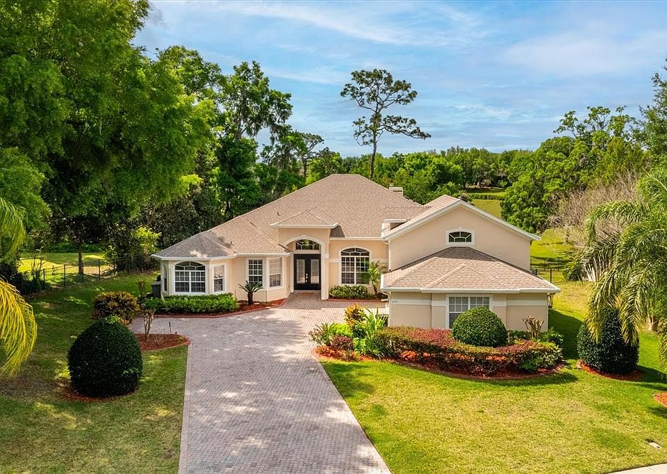 Welcome to the beautiful Rock Springs Ridge subdivision. As you drive up to this elegant home, a welcoming grand entrance awaits and beckons guests to approach. As you enter through the front door, a gorgeous view of the formal living and dining room awaits, creating a fluid space perfect for gatherings. To the left, there is also a secondary bedroom that could also be utilized as an office. A sprawling, open-concept layout seamlessly blends indoor and outdoor living as the expansive lanai serves as the backdrop overlooking a breathtaking view of conservation. High ceilings throughout this home create a canvas of space and tranquility that soothes the senses and gives a sense of grandeur. A separate family space is the perfect place to relax and offers incredible space overlooking the lanai and kitchen as well as a gas fireplace. Step into a culinary paradise where the heart of the kitchen is a mix of soothing colors, a sophisticated backsplash, stainless steel appliances, a center island, and a large pantry with custom doors. Three additional secondary bedrooms in this home offer a retreat of spacious comfort for rest and relaxation. If that’s not enough, the primary suite offers its new owners the perfect oasis of calm with its expansive layout and abundant natural light streaming in through the large windows. Indulge the senses in your own spa-like retreat complete with two oversized vanities, along with a separate tub and shower to relax at the end of the day. When guests come to stay for the weekend, a lofty bedroom upstairs can serve as the perfect getaway or even allow for a game room or theatre. Once outside on the oversized lanai leading to the outdoors, a private conservation area serves to soothe the soul and reconnect with nature. Brand new roof last year! New 80-gallon water heater, upgraded electrical in 2024, kitchen remodel, and newer appliances in 2022. This community offers its owners an awesome community tavern, tons of future growth and development coming in along with shopping and restaurants, and very close proximity to Field of Dreams recreation park as well as two other state parks! Zoned to the new Kelly Park elementary and middle schools. Call today!