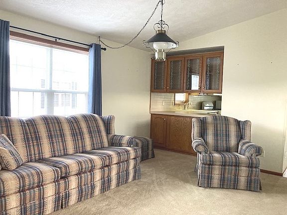 Yes, an ATTACHED garage with this 1400 sq ft. manufactured home in the attractive INDIAN TRAILS ADULT COMMUNITY! 2 bedrooms,2 baths, den, eat in kitchen, laundry room and 3 SEASON ROOM! Cathedral ceiling in living room~large kitchen w/bay window, pantry with pull out drawers, 6 month old stove, built in hutch with excellent counterspace, especially for family buffet meals! Extra living space with the 3 season room which has access to the 1 1/2 car garage and the back yard...no more getting caught in the rain! Pretty landscaped yard, both front and back. See it soon! You will be glad you did! Monthly fee includes sewer, water, trash, and basic cable TV. No residents under 25, no pets over 40 pounds. $24.95 per resident is required by management for background check/credit report...interview needed for management approval.