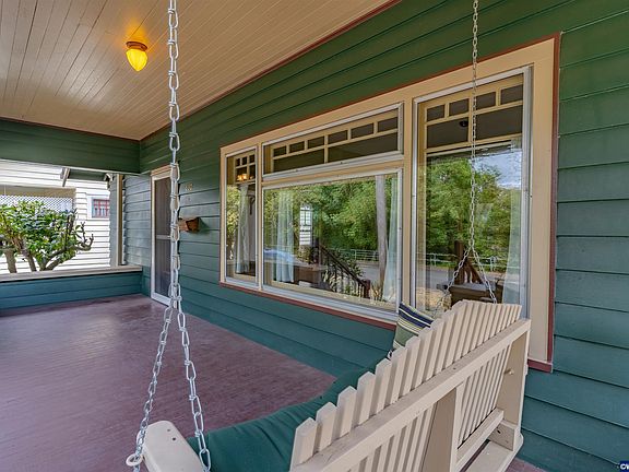 Charming 100 yr old home w/modern up-dates! Beautifully maintained & move in ready! Enjoy the front porch swing or head to the backyard with numerous fruit trees, berries & enclosed porch. Living room gas fireplace still boasts its original hearth & dining room has original glass pocket doors & built in shelves. Kitchen inc granite counter tops, original cupboards (prof painted), double basin & drainboard & old wood lift converted to shelf. Abundant storage upstairs w/inc. platform bed. Tons of updates!