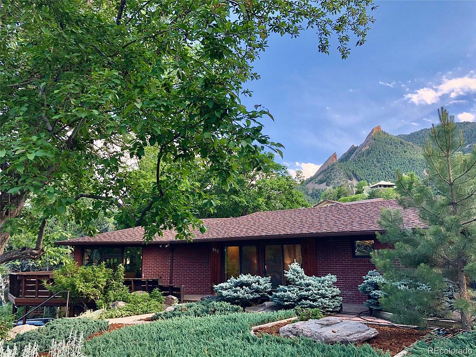 Stunning Location! Flatiron Views and Steps to Chautauqua Park Trails. Mid-Century Modern. Open Floor Plan. Main level features Living Room with wood burning fireplace, media nook with views of the Flatirons, Large open space for entertaining in the dining room and kitchen, large deck with views of the city off dining room, 2 bedrooms and a large bathroom with soaking tub and steam shower. Lower level features an entryway from the 2 car garage, Large master suite with fireplace or use as a family room, 3/4 bathroom, a darkroom for the photography enthusiast, mechanical room & storage. Landscaped with beautiful large rocks, trees and drought tolerate plants.