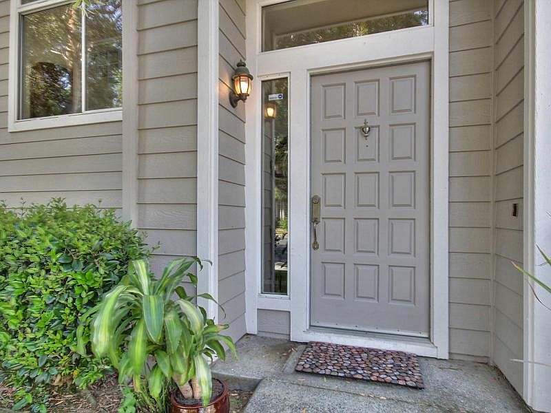 Largest updated end unit with quiet interior location.Dramatic high ceilings & windows bring in lots of natural sunlight.The kitchen features granite counters, s/s appliances & hardwood floors.Granite in 3 remodeled bathrooms.Lovely main floor bedroom for your guests.Large master bedroom suite with walk-in closet, separate tub & shower..Lots of trees and greenery & close to a lovely walking path along the water.Walk to Sandpiper school.Easy commute to tech & biotech hubs on Peninsula.