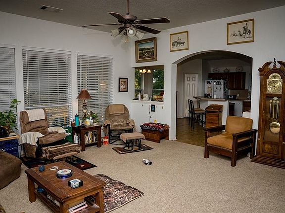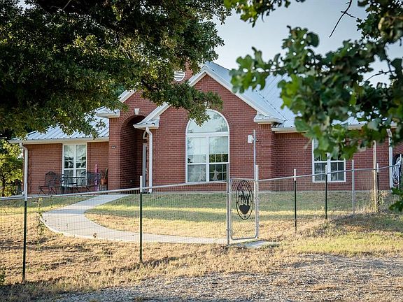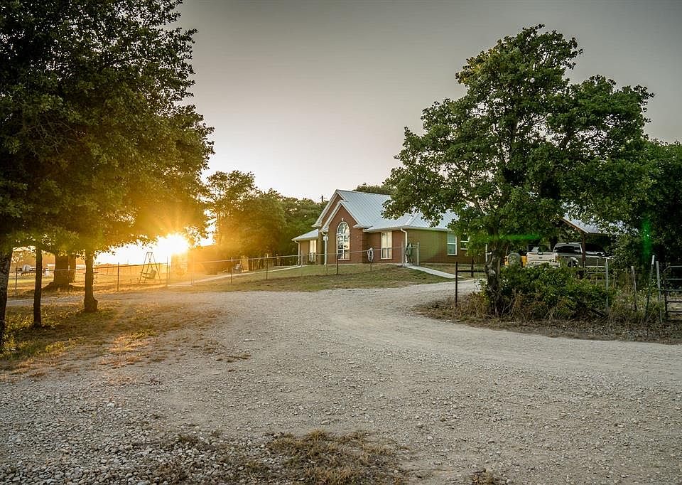 Located on 3 acres just outside of Rising Star, this beautiful home sits nestled amidst a large number of oak trees with great views. New sidewalks to the circle drive along with new gutters with leaf guards have recently been installed. A brand new 30x40 barn has just been constructed with 15 x40 sheds on either side complete with RV Hook ups and built in air compressor which conveys with the sell. The house has an open floor plan with high ceilings. There are 2 bedrooms but the large office could easily make a 3rd bedroom. The bedrooms and living room have new carpet. The Cross fenced pasture has another barn once used to stall horses. There are two more storage buildings on the property with electricity.