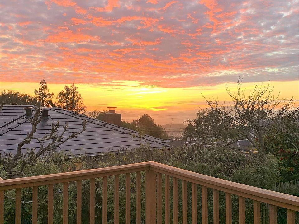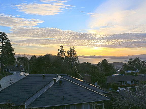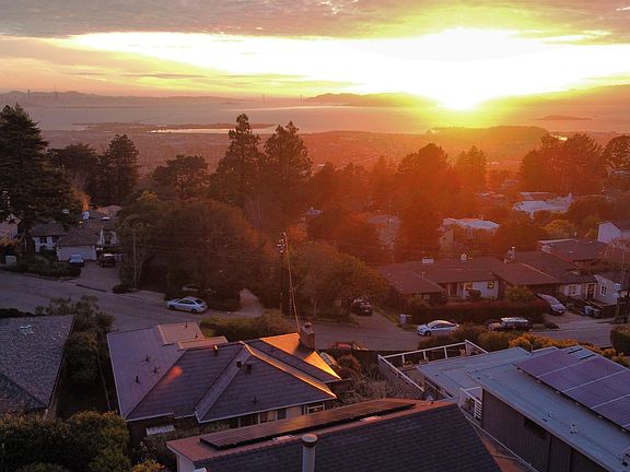 Transparent Pricing! Enjoy gorgeous Bay views & sunsets from this home perched atop the Berkeley Hills, with 5 bedrooms, 3 full bathrooms, 2 fireplaces, plus a home office (or 6th bedroom)! The top floor Master Suite has its own fireplace, new master bathroom and gorgeous Bay views as well. Kitchen and baths have all been updated. Living room with gas fireplace, Dining room with French doors out to a large deck with superb Bay views. Main level has hard wood floors throughout. A lovely garden with many fruit and flowering trees. Almost all new copper piping and new electrical wiring. Sewer Lateral compliant, Foundation Retrofit, Dual pane windows throughout, plus Solar power and backup natural gas generator are included! Large Finished attic for extra storage. Beautifully landscaped and a garage with California cabinets. Close to bus stop just a 10-minute ride to UC Berkeley. Very quiet neighborhood above it all, and a short walk to Tilden Park! With over2,400 square feet, there is good separation of spaces and lots of room for everyone! Motivated Seller!