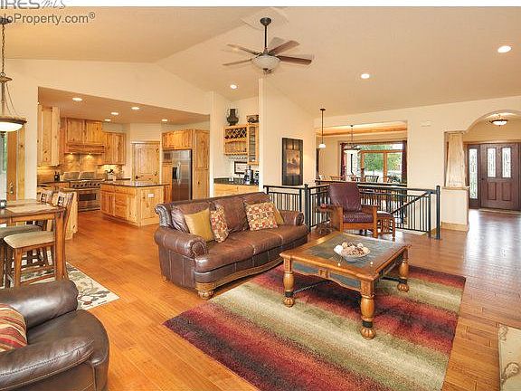 Colorado living at it's finest in this custom 5bd/5bath ranch style home. Enjoy breathtaking views of the 6th green from your expansive deck, great room and master. Exquisite hand scraped hardwood floors, natural stone fireplace, granite counters and open floor plan are everything you hope for in the Rocky Mountain hide-away. Work, play, and entertain in the immaculate walk-out basement with office, rec room, wet bar, theater room. Come enjoy your own personal clubhouse.