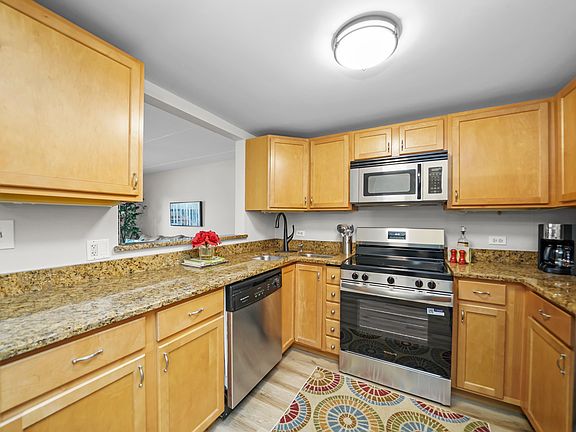 This sunny rehabbed two-bedroom, two-bath condo offers comfort and convenience with a smart layout, new plumbing and electrical fixtures, new bathroom vanities, new carpet, new kitchen flooring, freshly painted thru out, granite counters, and stainless steel appliances. Enjoy two private balconies, generous closet space-including a spacious walk-in closet-and an assigned parking spot. The building features two elevators, a fitness room, a sauna, and a newly upgraded laundry area. Located in a vibrant, walkable neighborhood known for its charm and community feel, you'll have easy access to bus stops and the Metra just a short walk away- quick access to I-290 for an easy commute. Local dining, shopping, parks, tennis courts, and a public pool are all nearby-bringing everything you need right to your doorstep. Just minutes from downtown Forest Park, North Riverside Mall, Brookfield Zoo, and Loyola University's West Side Campus.