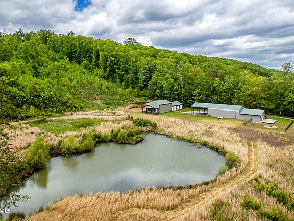 A rare find nestled between two wooded ridges, this property spans the valley, with approximately 32.8 glorious acres of Tennessee freedom. Huge potential for homesteading or a rural estate, this land is something special! The initial work has already been done for you, so you can move right in and get started. A portion of the land is cleared and could be used as pasture, with the remainder still wooded. Fish in your spring-fed, year-round pond! Hunt or view the abundant wildlife. Nearly 1,000SF barndominium living space with open, clean and contemporary styling. Enjoy breakfast seated at the bar, adjoining the kitchen with stainless steel appliances. Additional 1,530SF climate-controlled space suitable for additional living, storage, workshop or whatever suits your unique needs. A dedicated HVAC serves this area. Stay comfortable while you work on projects with 4 over-sized garage doors! Loft area for extra storage. Bonus cabinetry. Large back deck with fenced yard and fire pit for entertaining family and friends or times of peace and quiet...beyond quiet. Listen to the frogs in the large pond on quiet evenings and enjoy your slice of heaven! A second 2400SF metal building includes a massive, 3-car garage and an additional 1200SF of partially finished living area. The living area is framed, plumbed and boasts beautiful, exposed wood beam trusses that are custom designed. Amazing hunting lodge, gallery, apartment or more. By all measures, a dream-come-true shop, and blank canvas for your interests and needs. Covered porch facing the pond and rolling valley. Property extends from ridge to ridge, so you own the view! The sky is literally the limit on this property! Totally secluded yet close to I-81 with easy access to the Great Smoky Mountains, Gatlinburg, Pigeon Forge, Knoxville and Johnson City.