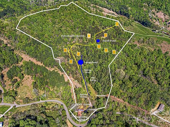 *Now accepting backup offers* Whether you seek a family compound with multiple living options, a mini-farm, homestead, or income-producing property, this renovated 3 BD, 2 BA Gambrel-style home with a 2nd living quarters and a 1car detached garage offers limitless potential. Provide a family member or tenant with their own private unit featuring a separate entrance, double-sided wood stove fireplace, full kitchen, and bath. Situated in a picturesque 41+/- acre cove with 2 spring-fed ponds, cleared roads, and multiple mapped homesites, this beautiful property is ready for your vision. Imagine creating a cozy retreat with a lovely south facing garden or a business venture like hosting short-term rentals with added tiny homes, yurts, or glamping in the meadow by the tranquil stream. The basement with full bath is ready for your final touches and could serve as another living space, office, or workshop. Currently a 2 unit Airbnb.