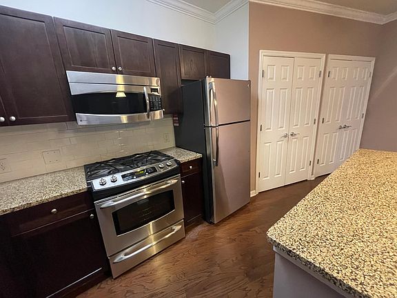 Don't miss this stunning, spacious 1 bedroom condo in the highly sought after "Eastside Commons" complex, just a short walk to everything downtown Stamford has to offer. Kitchen with hardwood floors, stainless steel appliances, granite countertops, and island/breakfast bar opens up to the spacious living room with sliders to the balcony. Comfortable sized bedroom with large walk in closet and ensuite bath with double sinks. Oversized, private corner balcony that overlooks the courtyard. PLUS, central a/c, gas heat & cooking, in-unit washer & dryer, reserved underground parking, plenty of storage space, complex fitness center AND shuttle to Metro North train station. Convenient to downtown, Chelsea Piers, I-95 (exit 8 or 9), Stamford dog park, Cummings Park beach, restaurants/shops, public transportation, grocery store right downstairs, banks and much more! One reserved parking space in the covered lot is INCLUDED in the rent. A one-time $300 move-in fee is required by the building association. Small dogs and cats considered on a case by case basis. A furnished option available for an additional fee.