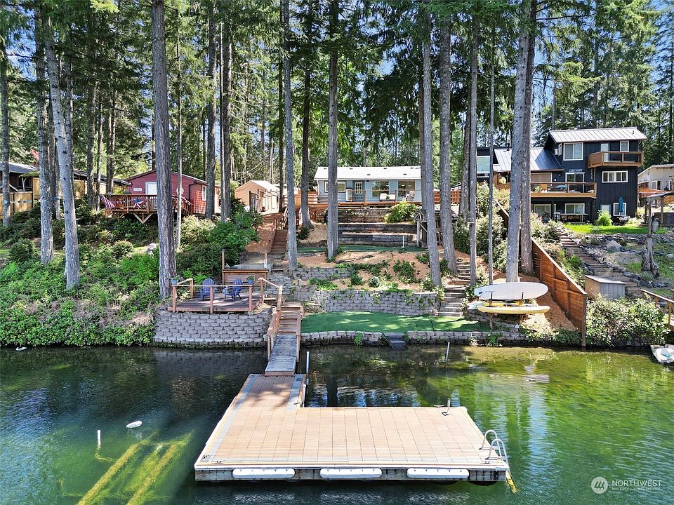 This 2BD Lakefront Home is perfect for summer & offers turnkey living, making it an excellent option for short-term rental income, a vacation home, or a be a local & live on the lake full-time. Featuring a new 40-year roof & gutters, fresh interior & exterior paint, Mini-split w/AC, hot tub, outdoor shower, low maintenance landscaping, a dock, & stunning views of Phillips Lake & the Olympic Mountains! Gorgeous remodeled kitchen perfect for entertaining, the river rock fireplace adds coziness on chilly nights, & beautiful hardwood floors throughout. Enjoy activities like boating, waterskiing, golf cart rides, & evening walks. This home is an excellent investment & a perfect place to call home w/its serene ambiance & vibrant lake community.