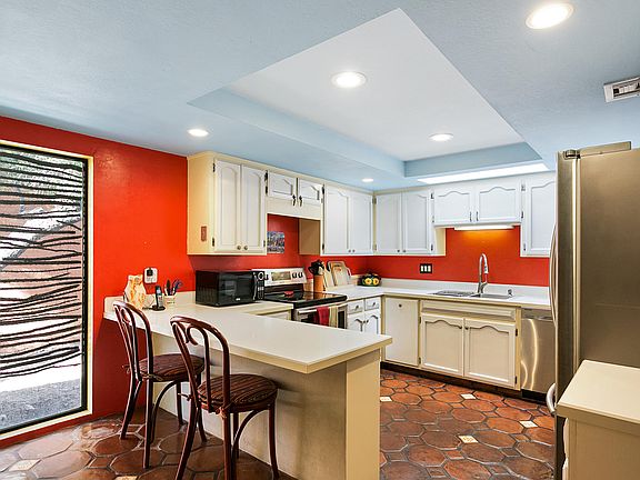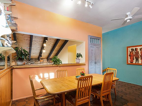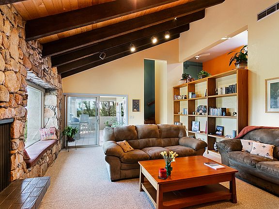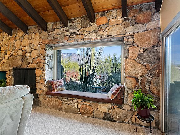 This unique tri-level town home featuring stunning city & Catalina Mountain views is a stand-alone, one-of-a-kind classic accented with a colorful, artistic flair.From the moment you enter the tiled foyer, this home draws you in, inviting you to view its environs from a variety of viewpoints.Experience sunrises or stargazing from the master balcony.Relax on the private patio, with both ravine & mountain vistas. Cozy up on a window seat & delight in the parade of wildlife through the panoramic picture window.Discover a room for every mood--the spacious living room with vaulted wood ceiling & stone fireplace, the charming dining room for entertaining, the tower room for an intimate, private hideaway.Explore endless nearby hiking trails, yet enjoy easy access to shops & restaurants.