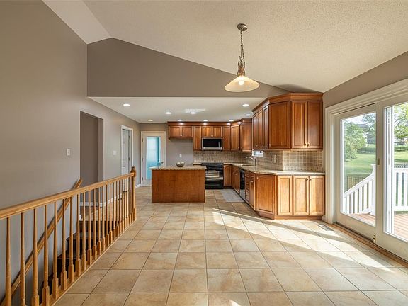 No Showing until 4/25. This house has so much space to offer & upgrades too! The main floor offers an updated kitchen w/custom cabinets, an island breakfast bar, a breakfast room that walks out to the newer 14x14 low maintenance deck & fenced yard, plus off of the kitchen is a newer sun room w/ceramic tile floors, then off of the breakfast room is a separate dining room, of course there is a great room w/vaults & a woodburning fireplace, now down the hall to the left is the Master retreat w/vaulted ceiling & a luxury bath w/jetted tub, separate shower & double vanity. All of that is just the main level - now go down to the walk-out lower level to tons more living space in the large rec & family room spaces, a private home office area + bath #3. The oversized garage has a 25-foot-deep bay on one side! Outside there is an irrigation system for extra green grass in your fenced yard. HVAC was replaced in 2019 & HWHeater was replaced in 2012 Additional Rooms: Sun Room