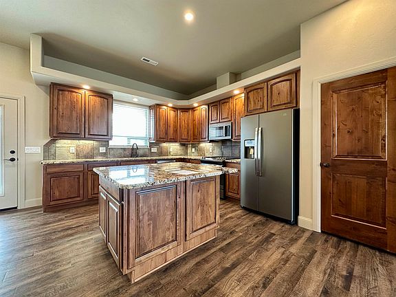 Looking for room to store your toys? This near new home built in 2021 on a .34 acre lot has room for them and more! The attached RV garage.has 16 ft overhead door plus 2 more bays for a total of 40X38 ft The RV parking can be extended into the generous back yard. This lovely home is move-in-ready with split bedroom design, large kitchen with gorgeous granite counter tops, large living room with a fireplace. The primary bedroom offers bay window, spacious barrier-free shower, and walk-in closet. This home has no steps!. It is a must see!