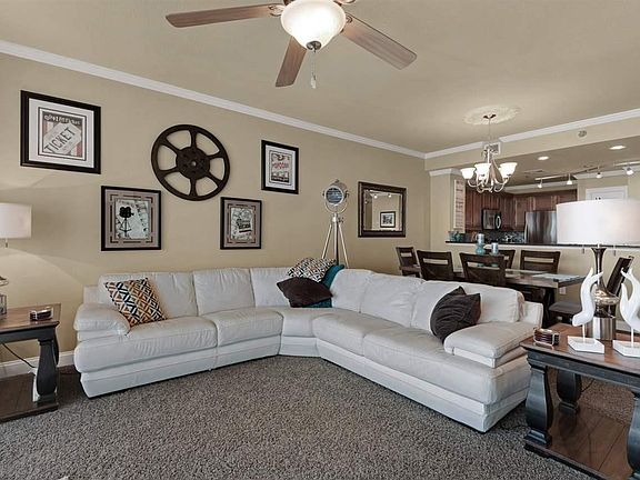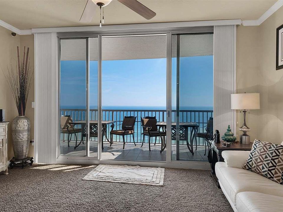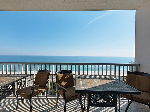 This beautifully maintained Emerald Dolphin condo has spectacular unobstructed Gulf views from the 13th floor balcony and floor to ceiling windows. A unique opportunity to purchase a Pensacola Beach condo that has never been rented, but is perfectly set up to maximize rentals in the future. Built in 2006, this is one of the newer condos on Pensacola Beach and there are seldom units for resale. Some of the upgrades include stunning Hanstone Quartz countertops in the kitchen and a newly installed glass tile backsplash, all stainless appliances, a refrigerator with a bottom freezer, and a stainless bi-level sink. The condo has been retrofitted with beautiful crown molding. The carpeting has been recently replaced throughout. The tranquil color in the master bedroom magnifies the spectacular views of the Gulf of Mexico - you'll never want to get out of bed! The master bathroom sports custom cabinetry with linen storage and a mirrored built in vanity. In the oversized walk-in master closet, in addition to the custom closet inserts, you'll find a private work station. The second bedroom has a direct entry into the second bath and can also be accessed via the entrance hallway. This unique floor plan has a bunk room right off the entry, furnished with youngsters in mind. You'll find a strategically mounted flat screen television in this room, perfect for gaming or cartoons. The 28 foot Gulf view balcony offers room for patio furniture and entertaining. The condo has a large laundry area with a separate locking closet. The owners have dressed the balcony up by tiling the balcony floor. This unit comes with a private garage parking space and a climate controlled storage unit. The Emerald Dolphin has an exceptionally large pool with a hot tub, beach lounge chairs and picnic areas so family and friends can enjoy the sunny Florida weather. There is also a state-of-the-art exercise room on the fourth floor where you can work out while watching the dolphins frolic in the Gulf.
