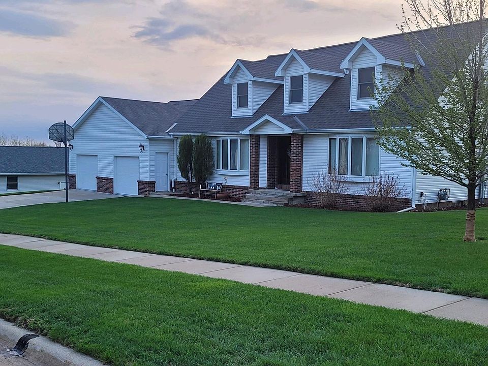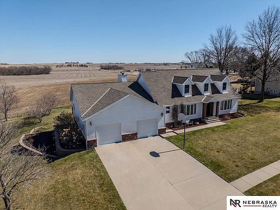 Exquisite custom-built home on a serene one acre lot, thoughtfully designed by its meticulous, owner. This move-in ready gem has four spacious bedrooms, two additional non-conforming rooms, several large storage areas and a storm shelter, providing ample space for all. The main-level features beautiful oak wood floors, the Primary & 2nd bedrooms, laundry room, large open concept kitchen/dining, hearth room with wood burning fireplace, two bathrooms, and a luxurious spa room with cedar walls and rejuvenating hot tub. The finished walkout basement features a large living room with gas fireplace, and a rec room with wet bar, perfect for entertaining! Outside the large deck and patio areas allow you to enjoy the tranquil backyard which overlooks an expansive empty field, ensuring privacy and a peaceful ambiance. Steel siding has a transferable lifetime ltd warranty. Located just two blocks from Arlington schools and the softball complex, this property offers convenience and accessibility.