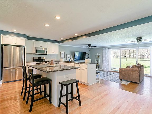 MODERN UPDATED RANCH sits on 1.2 Acres! 4 Bed/2 Bath open floor layout, perfect for entertainers. Loads of natural light floods this spectacular home. UPDATED KITCHEN boasting stainless steel appliances, granite countertops, plentiful amount of white cabinetry and walk-in pantry, island, along with hardwood floors. Formal dining. Enjoy a 360 view of the gas fireplace, a stunning focal point on the main level. NEW interior doors. Primary bedroom has brand NEW vinyl flooring and a large closet! Don't miss this great location, first floor living and be sure to check out the HUGE backyard, with a brand NEW fence! Delayed Negotiations Wednesday May 11th, offers to be reviewed at 7pm.