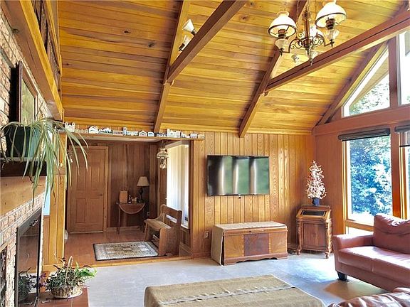 Come home to the tranquillity of 36 private acres in the Laurel Highlands, feel yourself unwind as you drive up your tree lined driveway to your lovely New England contemporary. Relax at your inground pool. Guests can enjoy their own quarters above the detached 2 car garage. Enjoy a game of pool in your finished game room and for those wanting their private man cave you have a workshop located off the game room with full bath. The home features 2 bedrooms and bath on one side and master suite with bath on the other side. On those long winter evenings enjoy keeping warm by the stone gas fireplace in the living room watching as the deer frolic. The house also features a loft for additional sleeping quarters and family room with laundry off the open kitchen/dining area. Enjoy the lush green lawn,numerous fruit trees, and 1 acre fishing pond. During the pandemic sellers have updated kitchen, new barn doors, and many new plants and trees for outside enjoyment.