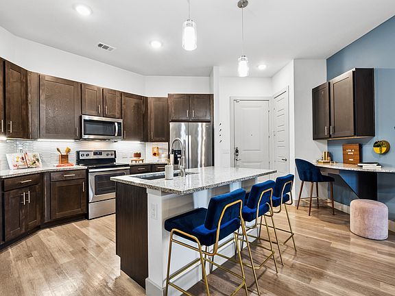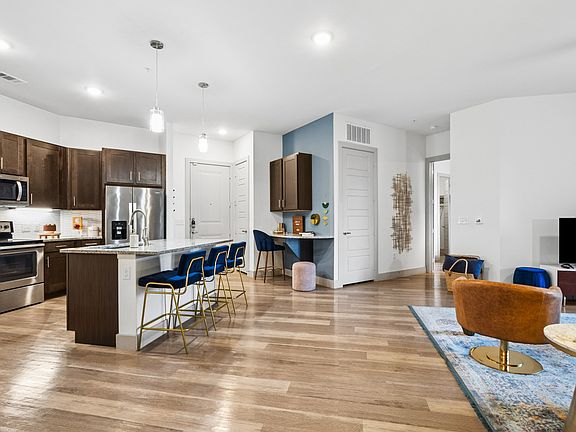 - Exterior features: 10-Foot Ceilings, 24/7 Fitness Studio, ADA Accommodation, Built-in Desks*, Carports Available for Purchase - $75 Each, Community Market Coming Soon!, Energy Efficient Stainless Steel Appliances, Kitchen Islands, Modern Lighting, Nearby Parks and Trails, On-Site Maintenance, Outdoor Kitchen with Grills, Package Receiving, Pet Park, Private Fenced-In Yards *, Private Garages*, Smart Home Technology, TV Lounge, Walk-In Glass Showers *, Wood-Style Flooring