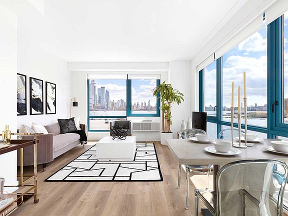 Brand new waterfront community featuring low upfront move in costs with reduced security deposit, no broker fee and 1st month free Modern apartments with open style kitchen, granite counter-tops, stainless steel appliances, hardwood floors thru out and lots of closets Amenities feature approx 70,000 sq feet of space with state of the art fitness center, yoga studio, 2 outdoor pools, bbq area and fire pits, game room, resident lounge and several wi fi areas with work stations, media room, virtual golf Walk to Light Rail Train Station, Lincoln Harbor Ferry, NYC bus stops in front and direct to Manhattan Port Authority, River Walk (8 Mins) to Hoboken, Whole Foods Shopping next door and mins to all other shopping Don't miss the great special (1 free month) being offered for this ultra modern luxury waterfront community All prices and terms are subject to change daily