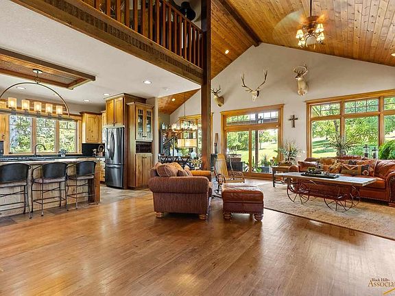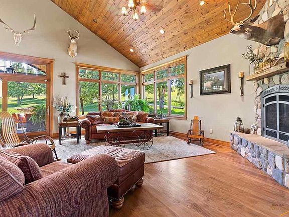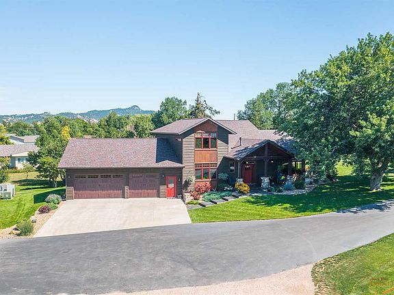 Listed by Jeremy Kahler, KWBH, 605-381-7500. Immerse yourself in the luxury of this custom-built home that combines quality construction with rustic design and upscale finishes, on a private 5 acres! *Main house features 3 levels and 3,700sqft *The uninterrupted flow of the main floor is an entertainer's dream, starting with a sizable great room that flows into the formal dining area and onto the dream kitchen *Accented by 2 story vaulted ceilings, hickory wood floors, a corner gas fireplace, and large windows, this space welcomes you in and you'll never want to leave! *The recently remodeled kitchen is a chef's dream- with ceiling height 2-tone hickory cabinetry, leathered granite countertops, a hand-hammered copper sink, high-end appliances, an island with built-in gas cooktop, and a custom coffee bar area for your morning lattes *Formal dining room with slider door access to patio *Main level guest suite option with walk in closet and private access to the Jack-and-Jill bathroom. *Custom wood staircase with granite tile risers leads to the upper level living room/den with tongue and groove ceilings, mahogany wood floors(made from the old BHSU Cook gymnasium bleachers!), wood accent beam and good storage space *Upper level master retreat withspacious bedroom, 11'x7' walk in closet and a spa like bathroom with custom tile corner shower with river rock floor *Basement level has alarge multi-purpose room, cozy family room with wet bar, 1 bedroom with egress window, a 15'x15' man cave/storage room and a fullbathroom with rare underlit Onyx vanity countertop *Outside has a finished, attached 3-car garage with 11' ceilings, in floor heating, greatstorage space and back yard access *Enjoy the sights and sounds of your private acreage from the side deck or on the fantastic coveredpatio, complete with built-in kitchen and new manufactured granite countertops *The 1,400sqft guest house has an open concept main levelwith 2 overhead doors that lead to a bonus bedroom (ntc) a kitchenette prep space and a multi-use living space, the upper level showcases abeautifully updated kitchen, 1 bedroom with privacy balcony and a full bathroom *5 well maintained acres with countless mature trees andshrubs for shade and privacy, and beautiful landscaping around the home, maintained by sprinkler system *Detached equipment building foradded storage or hobby space *RV Parking pad near guest house. ***Do not miss features include: oversized wood trim throughout, 18'vaulted ceilings, in-floor heating, rough edge granite countertops throughout, underlit Onyx vanity countertop, hand-hammered copper sinks, new roof (2020), stamped concrete throughout the exterior, automatic whole-house Koehler backup generator (less than 1-year-old), private well for watering/irrigation-3 frost-free hydrants on the property and more! **Full legal: Pope & Talbot Addition Lot 14A of lot 14 E1/2 SW1/4 Plat2008-03928**