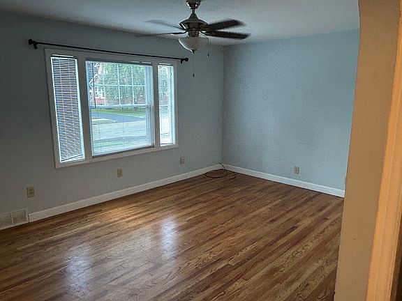 Gorgeous single-Family home on a corner lot. 4 Bedroom 1.5 bath with extra-large 2 car garage attached. Refinished hardwoods throughout, refinished basement, all new windows, new roof, & new bathrooms. Enclosed back porch & fenced in yard. Private setting and very quiet neighborhood. Pets on individual basis and may impact rent and responsibilities. One-year lease. Shorter lease option would change terms. No smoking in building. Background and Credit check. References.