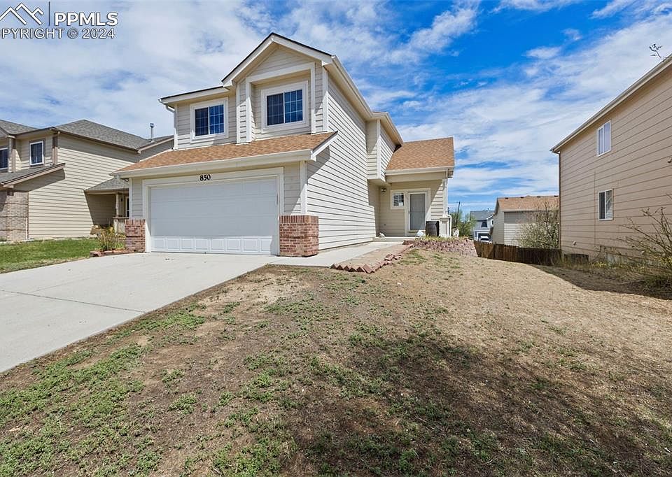 This wonderful two-story home in Fountain is now available and ready to impress. The home features two-tone paint, neutral flooring, and a refreshed kitchen. Upon entry, a spacious living room flows into the main level, including the kitchen, dining room, and a convenient half bath. The main level opens to a deck overlooking the backyard, perfect for outdoor relaxation. Upstairs, the primary suite offers an attached full bathroom and a walk-in closet. Two additional bedrooms share a full bath off the hallway. The garden-level basement expands your living space with a rec room, a fourth bedroom, and a generous storage area. This home offers quick access to I-25, Fort Carson, shopping, parks, and more. You'll appreciate the updated amenities and the convenient location.**ROOF DOES HAVE HAIL DAMAGE**