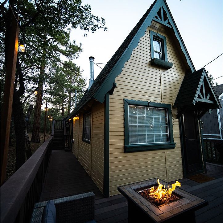 Welcome to the the coziest cabin in Sugarloaf! This property has an active Short Term Rental permit and is listed(hold) on Airbnb. This quaint, fully renovated, 2 story cottage boasts a double lot with lots of parking. All that extra space would be perfect for RV Parking, an ADU, or even parcel it off and build another home! This cabin has a wrap around deck with internal and external access to the upstairs rooms. We are a few houses away from hiking trails and National forest and only 15 minutes away from Down Town Big Bear, Snow Valley, and Big Bear Lake. The open floor plan and wood floors, trim, and ceilings will make you feel right at home along with the remodeled kitchen and bath. When winter comes around, you have the option the wood burning stove or wall heater. Walk today!