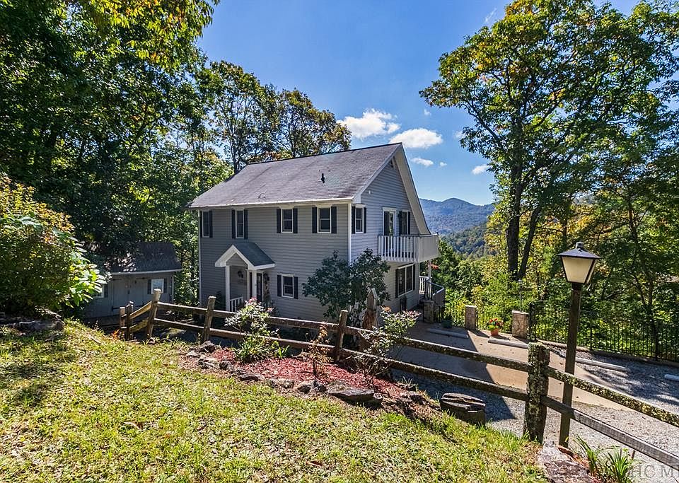 This charming mountain home was built by the owners and has been lovingly maintained over the years. When you pull in the driveway you are greeted with panoramic views of the mountains. Through the front door is open concept kitchen, dining room and living room that open to the covered deck. The kitchen features a pecan wood island, glass front pine cabinets and plenty of storage. The living room has a cherry fireplace. All of the wood in the home was brought from Florida off of family land. Also on the main level is a full sized bathroom and a pantry. Upstairs is the large master bedroom, guest bedroom with a balcony and bathroom. Both bedrooms have views of the beautiful mountain range. On the lower level is a large bonus room with cedar lined built-in cabinets, a full bath, laundry room and covered deck with steps to the back yard. There is a large shed outside with plenty of storage for tools and equipment. Located 5 minutes from Lake Glenville boat landing and The Pines Recreation area and 20 minutes from Cashiers. The home is being sold furnished so all the new owner has to do is move in!