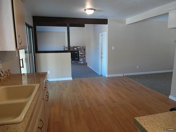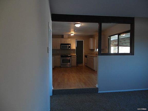 Ranch house with two living areas that has been remodeled! New paint and carpet throughout. Remodeled bathrooms with new vanities, new tile surround and new toilets with tile floors. Two living areas, one with a wood burning fireplace and one with a stove. Large eat in kitchen with wood style floors, new granite counters with upgraded cabinets, appliances and lighting. Home is situated on over an acre backing up to open BLM land. Includes horse stalls, chicken coop and 2 storage sheds.