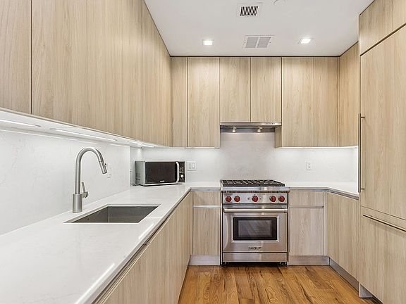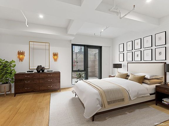From the minute you enter the apartment you are welcomed by bright Eastern sunlight, pouring in from oversized industrial windows, complemented by rich 5” white oak hardwood flooring, recessed designer light fixtures, Italian cabinetry, and fine porcelain floor tiles throughout. Currently set up as an enormous duplex studio, this home can easily convert into a one bedroom. There is also a separate office space and a huge walk in closet on the bottom level. With 1.5 bathrooms, washer and dryer in unit, and 120 sf private patio with a direct entry to the buildings common gardens, this home truly has it all.