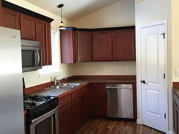 Built in 2011 w/ 10-yr structural warranty and 5 star efficiency, fenced yard w/ dog door to garage, 1 mile from Glenn Hwy and Alaska State Fairgrounds, partial view of Pioneer Peak, garage door opener, attached garage.