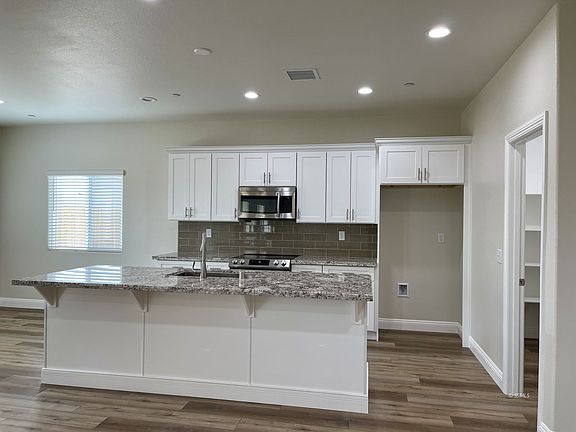 Opportunity to be a part of the sought after development CASA DEL SOL in the desirable north west area of Ridgecrest. This elegantly designed and meticulously constructed 4 bed, 2 bath home complete with paid solar system sits on the largest lot in the subdivision. Bright open floorplan with LVP flooring throughout main living areas, beautiful kitchen with energy efficient stainless steel appliances opens to the great room and includes granite countertops, tiled backsplash, soft close cabinets and a large walk-in pantry. The owner's suite is spacious with a large walk-in closet, double sinks, garden tub and separate shower. Hallway gives access to full guest bath with granite countertops and double vanity as well as a centrally located utility room featuring built-in cabinets and washer/dryer connections. The three guest bedrooms are generously sized and include carpeted flooring and lighted ceiling fans. This home has ample storage, a covered patio and much more! Additional features include: LED recessed lighting throughout, 7 kW solar system & energy efficient heating/cooling, front yard landscaping and large backyard with access on both sides. HBW 2-10 home warranty is included